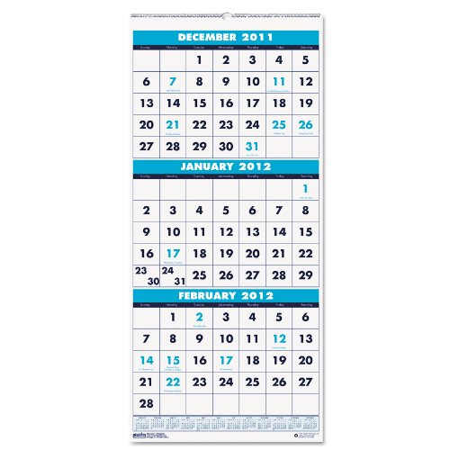 House of Doolittle Three-Month Calendar 14 Months December 2010 to January 2011, 12.25 x 26.5 Inch, Large Numbered Days, Recycled (HOD3640) Feature